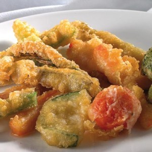 Berenjena, calabacín, zanahoria, pimiento rojo, pimiento verde, pimiento amarillo, coliflor, brócoli, espárragos trigueros, alcachofa, agua, aceite de girasol, harina de trigo y tempura.