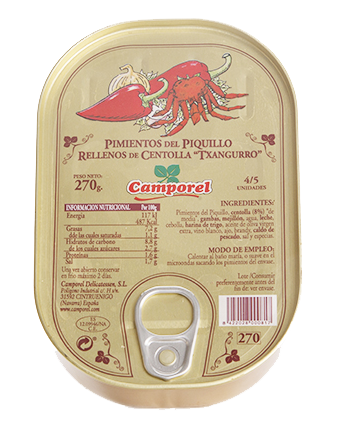 Camporel te lleva a la mesa este delicioso bocado de frutos del mar en perfecta armonía con el sabor dulzón del piquillo y con cierto regusto al asado.